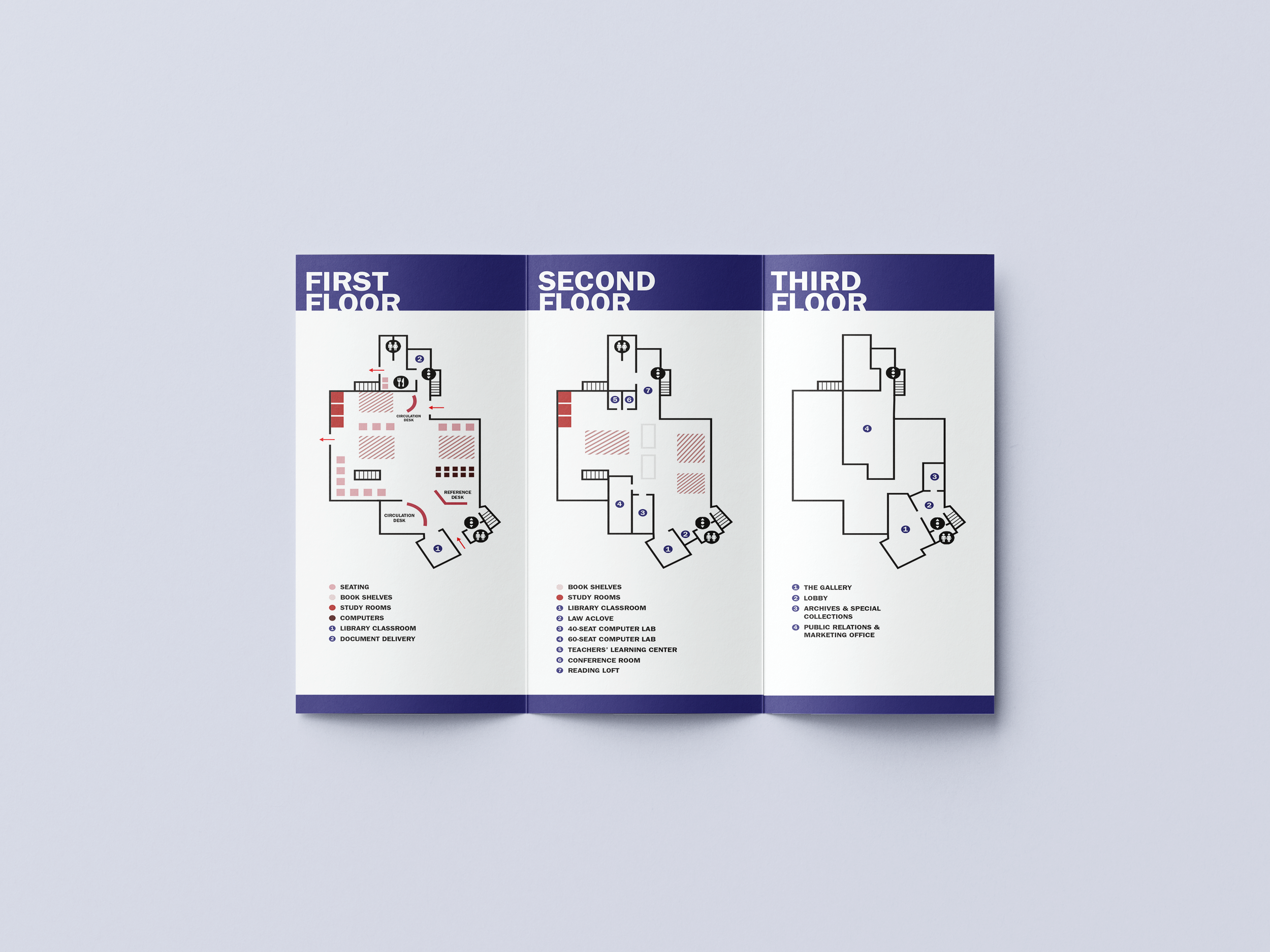 For this Environmental Design project, I had to create a simple yet effective way to display the layout of the three levels of Penn College’s Madigan Library, as well as give some information about the library itself. To accomplish these objectives, I designed a brochure that is clean, easy to read, and also integrates and represents the brand identity of Penn College. The brochure is readily portable, offering convenience and seamless accessibility to users.